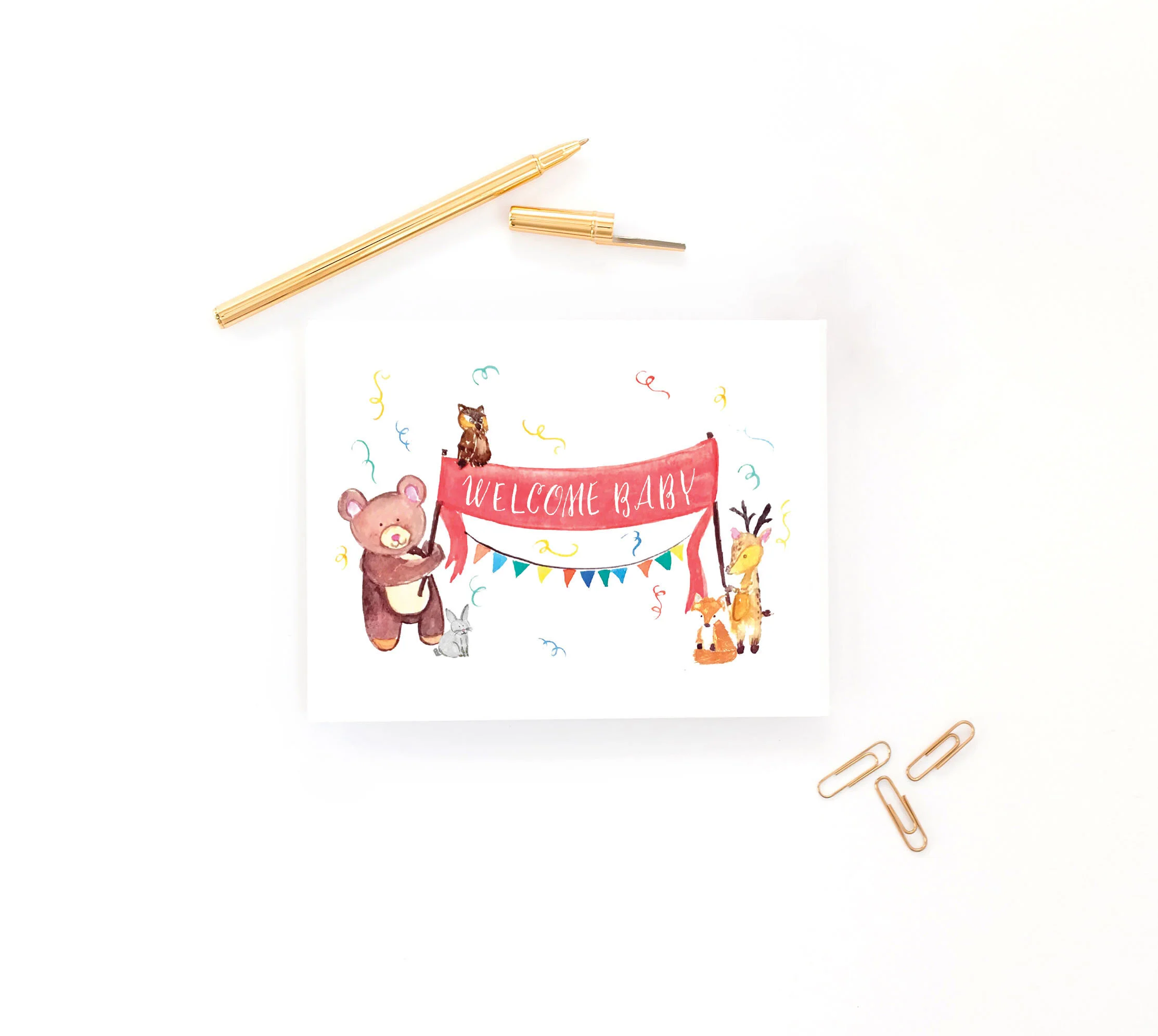 Welcome Baby, animal parade, baby shower — Greeting Cards
