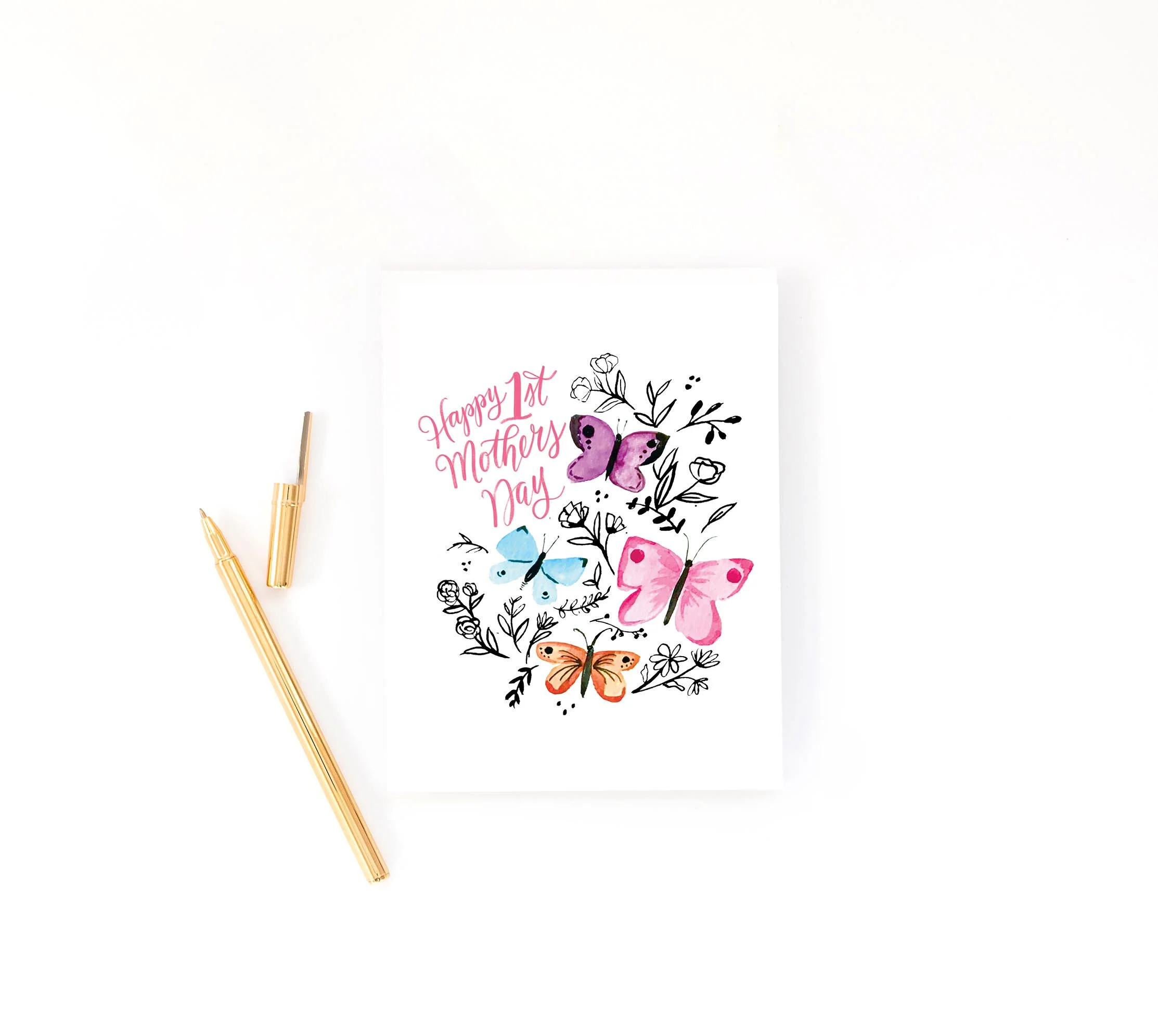 First Mother's Day / 1st Mothers Day / Butterfly Greeting Card/ Mother's Day Card / Watercolor Card / Blank Card / Floral art