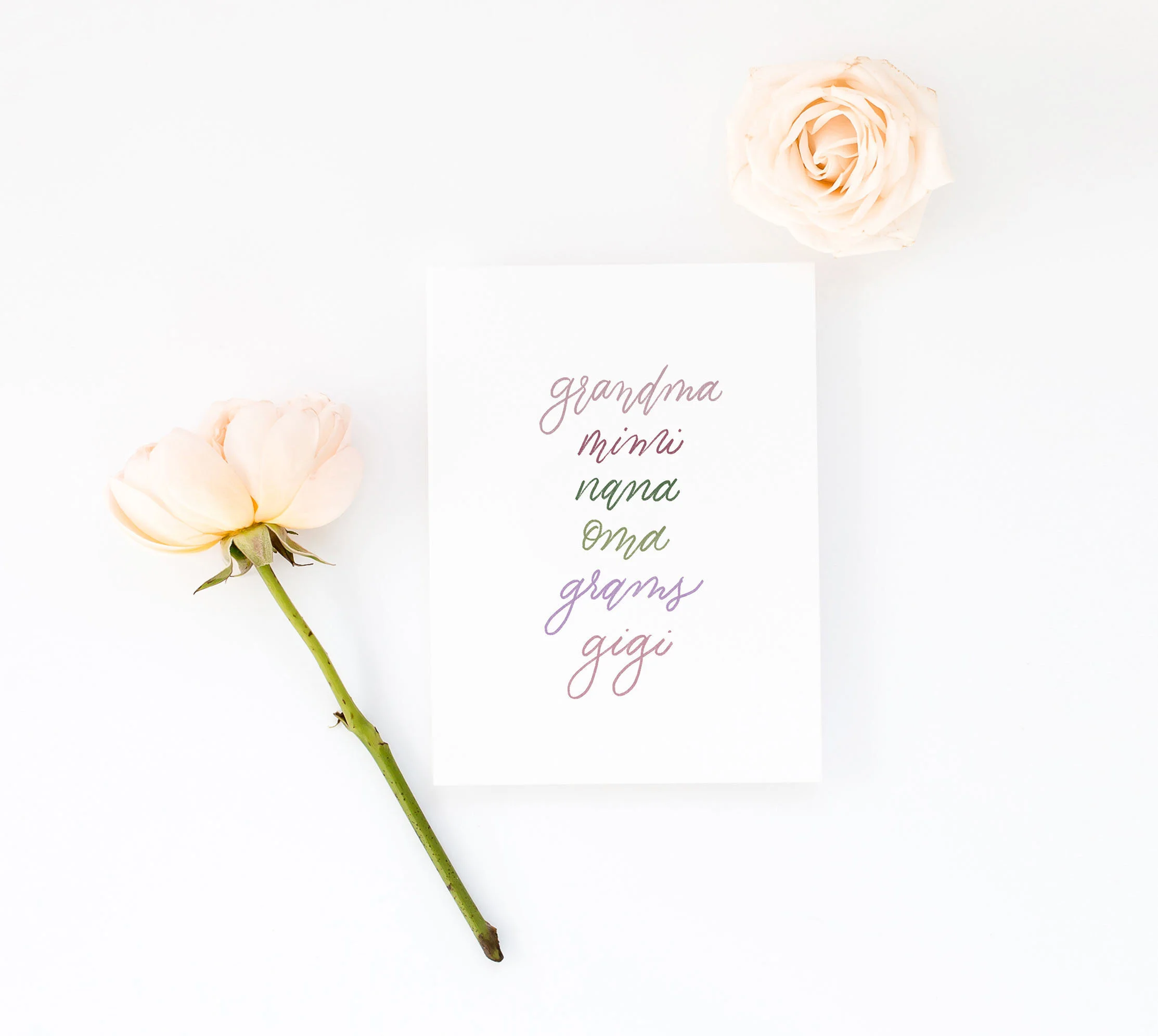 Names for Mom/ Names for Grandma— Mother's Day Card