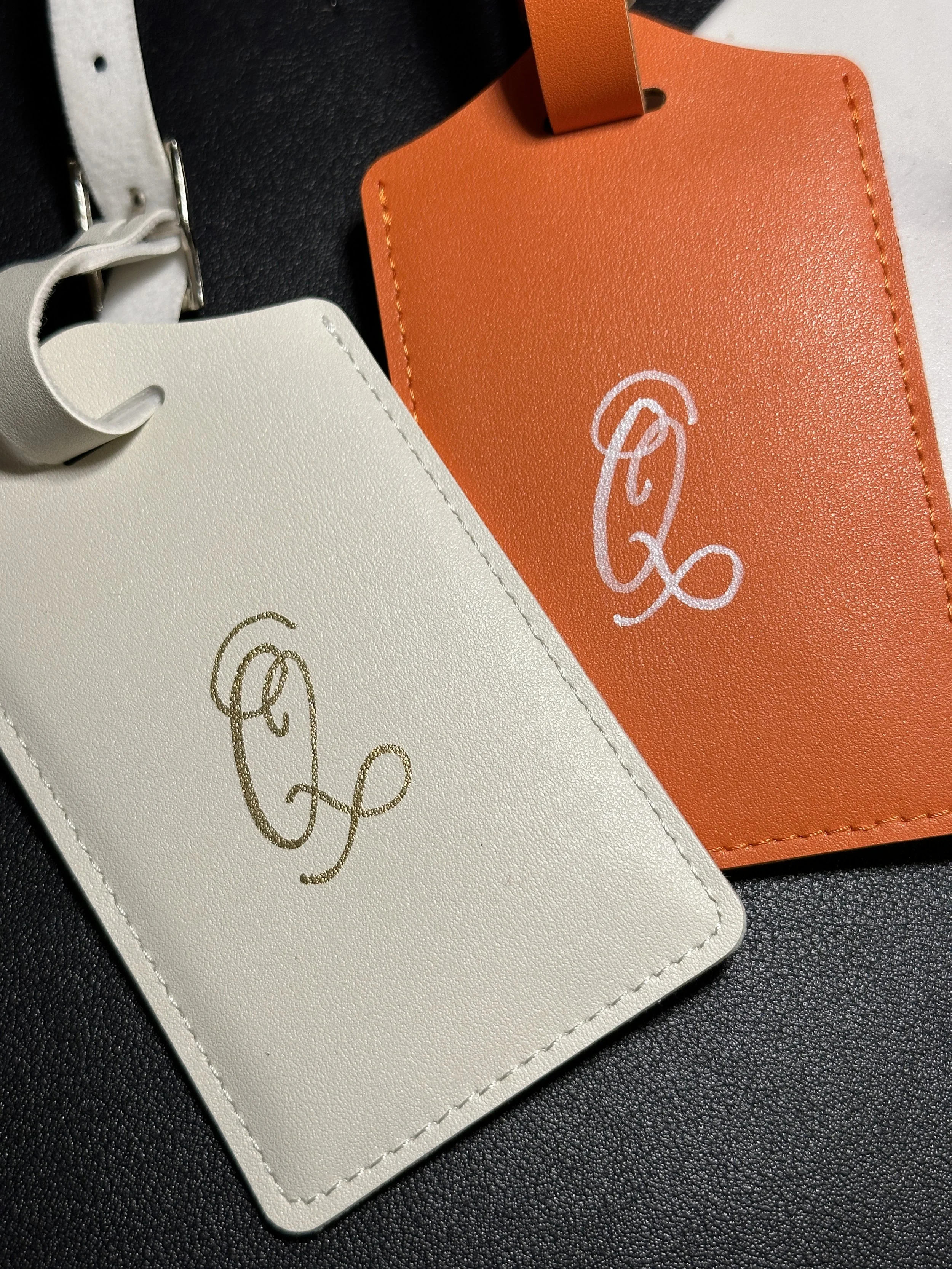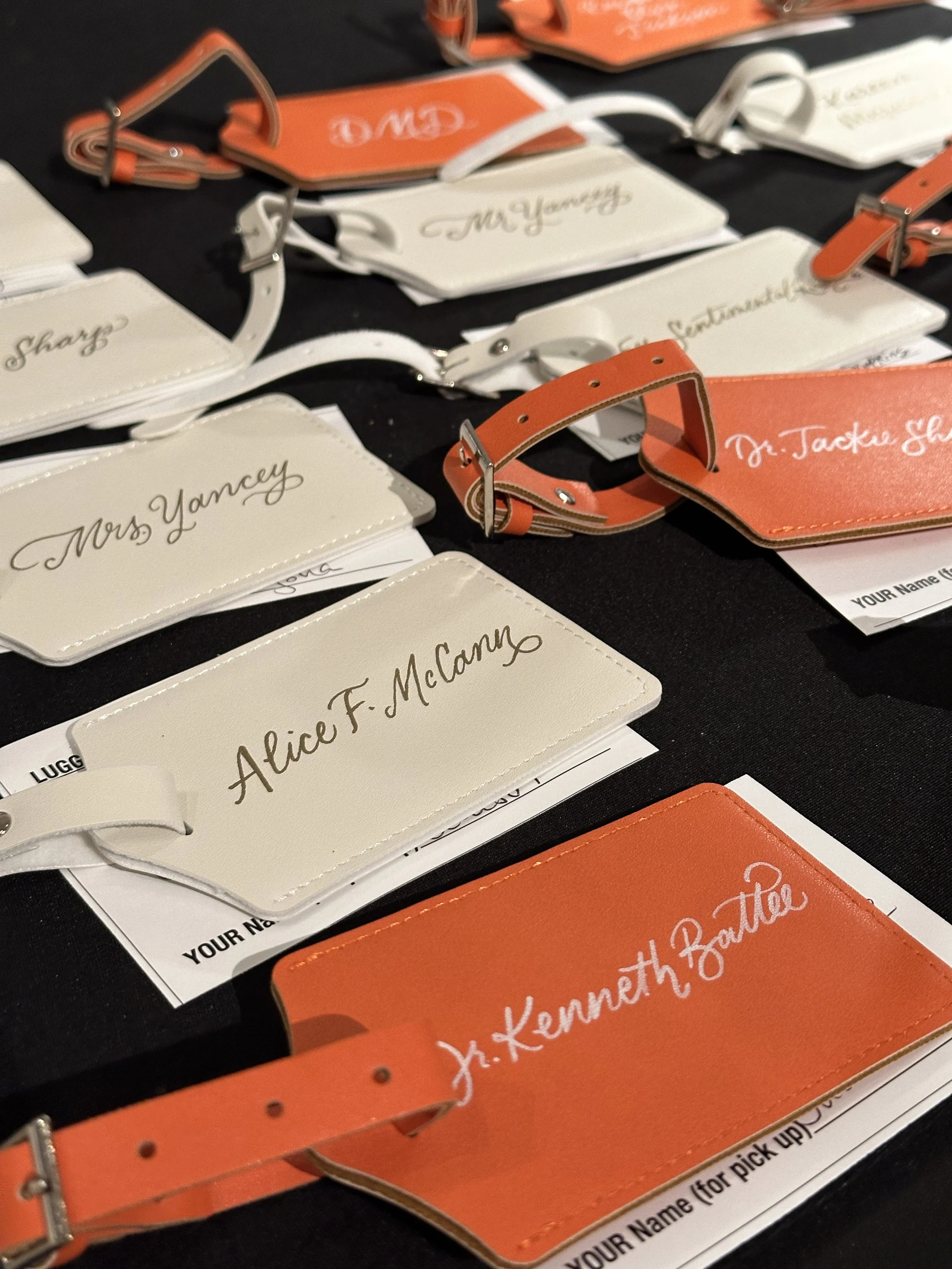 A fun night celebrating NHS Chicago 50th Anniversary celebration held at the always fun Griffin Museum of Science and Industry. Guest’s had the opportunity to choose a white or orange luggage tag for me to customize with a name of initials—some went silly, some went straight forward and some went simple, like my favorite “Q” tags you see below for a couple. What would you write on your tag?