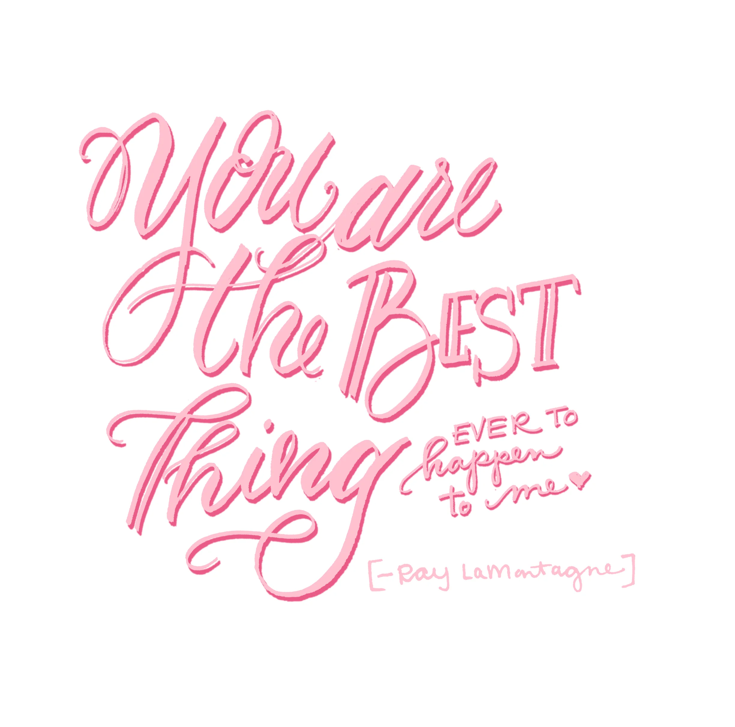 I have been doing a small challenge on my Instagram this month to post a love song lyric each day called #lettersforlovesongs. I compiled a list of my favorite love songs lyrics and have been giving myself 30 minutes to pick, sketch and (if need be) computerize the text. Some of them I feel so good about in person and then I photograph them and feel subpar—does that ever happen to you?