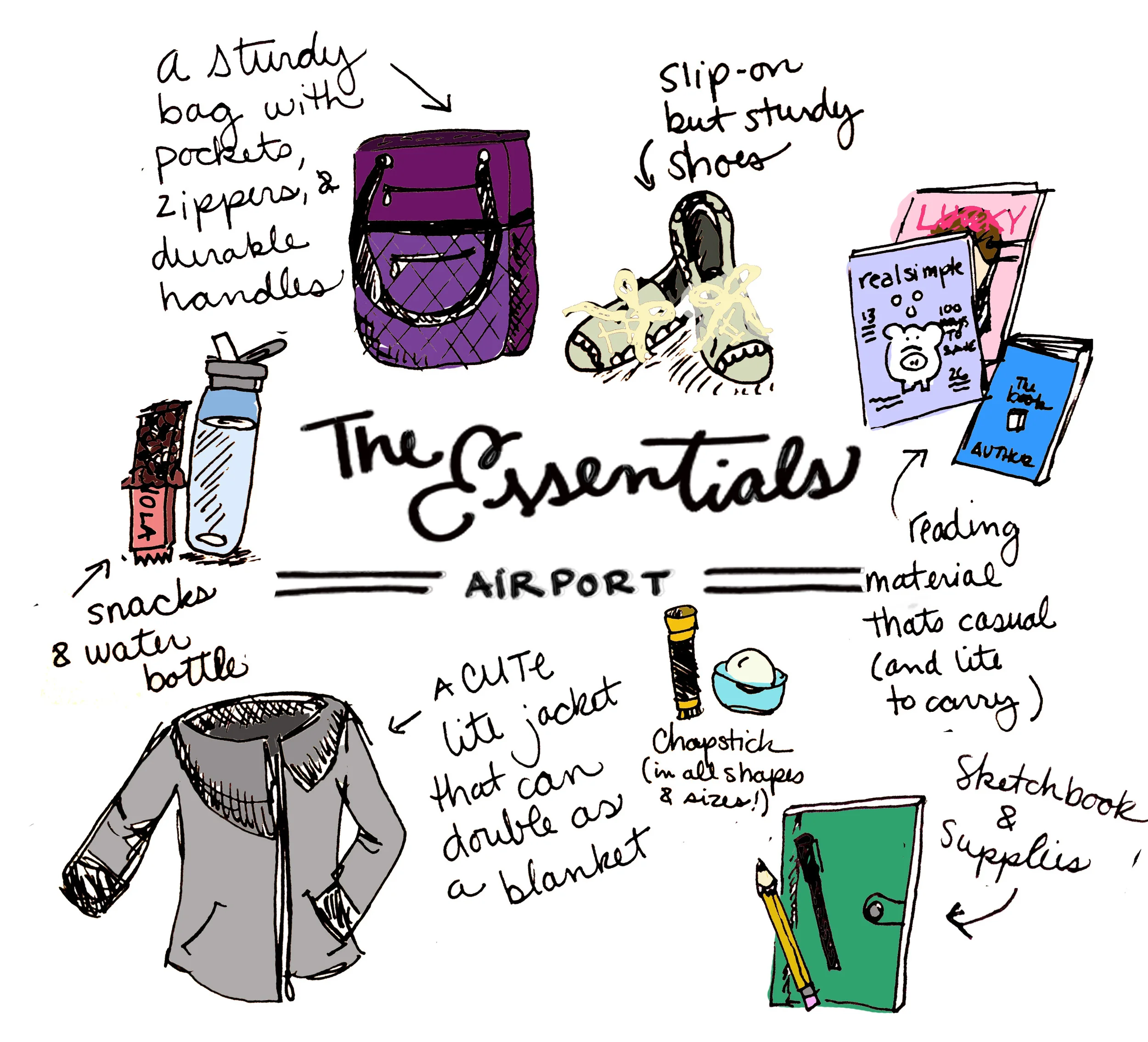 Sketchbook & Pens : The airport is incredible people watching, and usually has great art pieces decorating the terminals. I have a sketchbook with me to capture all the funny moments and when inspiration strikes.